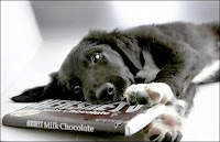First, chocolate is a toxin to canines. Dark chocolate is worse than milk chocolate by a factor of eight. In practical terms, one ounce of milk chocolate per pound of Fido’s body weight will kill him; whereas it would take only 1/8 oz of dark chocolate per pound of body weight to kill a pooch. So keep your Cadbury hidden if you know what’s good for your pet.