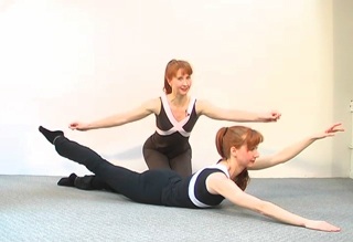 - double leg kick–the subject moving from head and shoulders down and knees bent, to her back fully arched and arms extended behind her, and then back to head down/knees bent in an alternating manner