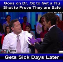 The last one is my particular favorite and what this post is all about. True, ye’ old flu-shot proponents, an inactivated virus like the ones that make up the flu shot can’t cause infection, because…well, they’re dead. But they do, in fact, cause an immune response…uh, that’s the point…and that response will be fraught with symptoms like body aches, fever, congestion, cough, and so forth. And that’s just what happened in the latest episode of “Pound My Paradigm,” starring Piers Morgan who took the flu shot, and Dr. Oz who administered it (video below): The patient got observably ill immediately following the injection….ha ha haaaaaa….I love T.V.!